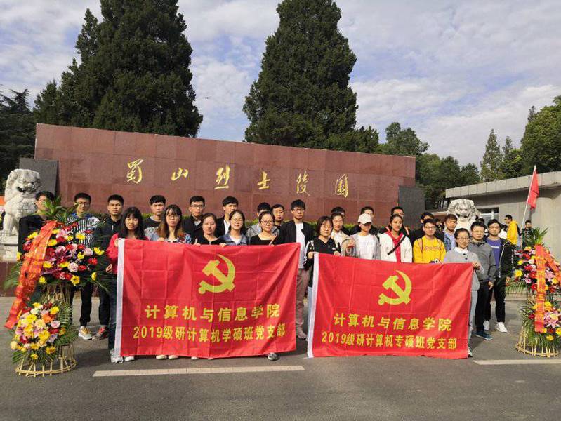 2019年11月2日上午,88038威尼斯官网2019级研计算机学硕班和专硕班党支部开展了以“缅怀革命先烈、重温入党誓词”为主题的党日活动,共28名党员赴大蜀山烈士陵园参加了祭奠革命先烈活动。