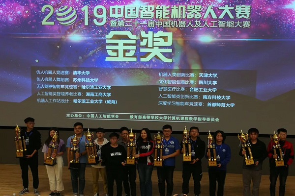 我校代表队由威尼斯官网方宝富、张晶老师等多名教师担任教练,从暑期集训1个多月的30多名学子中选拔出8名队员参加了本次大赛,经过刻苦备战、积极调试,最后为学校、学院赢得了荣誉。除了获得本次比赛的金奖,还在智慧医疗比赛、智能交通比赛、仿人机器人类比赛障碍跑比赛、人工智能类创新比赛等4项子赛事中荣获一等奖。