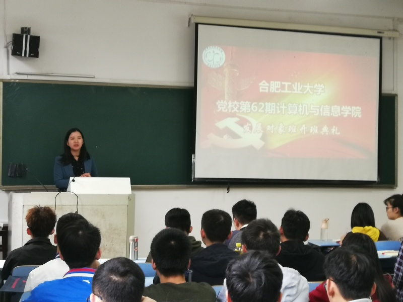 为加强对大学生党员发展对象的理论知识教育,同时促进党员发展对象端正入党动机、坚定理想信念、增强党性修养,2019年10月16日在翡翠湖校区六教110教室举行了学院党校第62期发展对象班开班典礼,发展对象班全体成员参与了本次仪式。