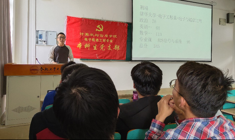 2019年4月23日下午,88038威尼斯官网电子信息工程专业党支部在翡翠湖校区教学楼举办了“学长学姐经验交流会”活动。活动邀请了2015级电信工专业的荆琦、杨佳宇、谭鑫凯、柯春青、高光远五位优秀学生党员与大三年级本科生进行了面对面的交流。