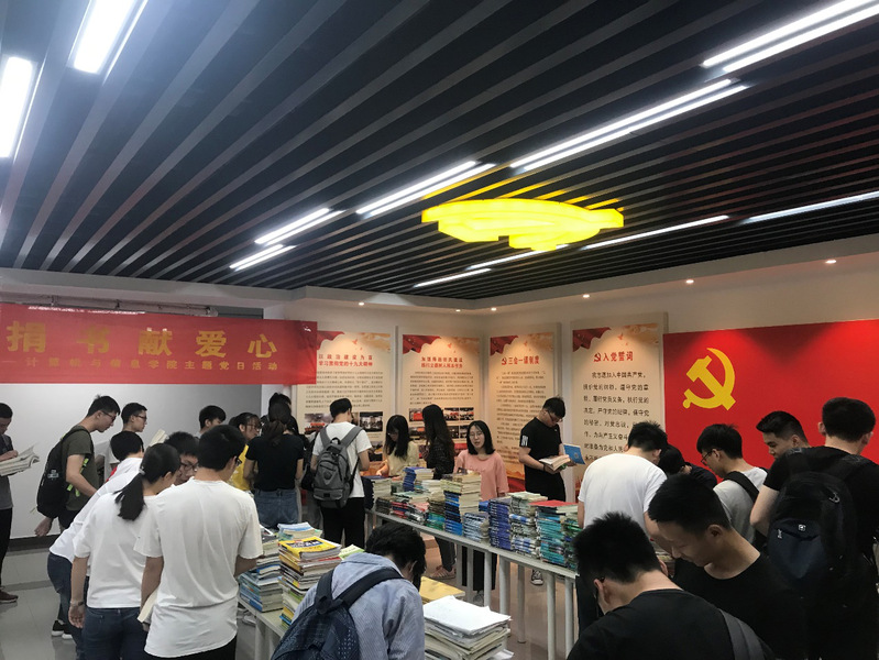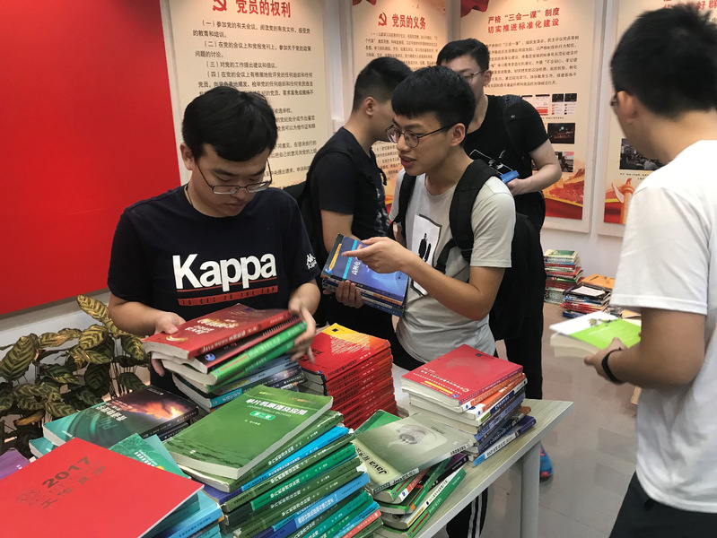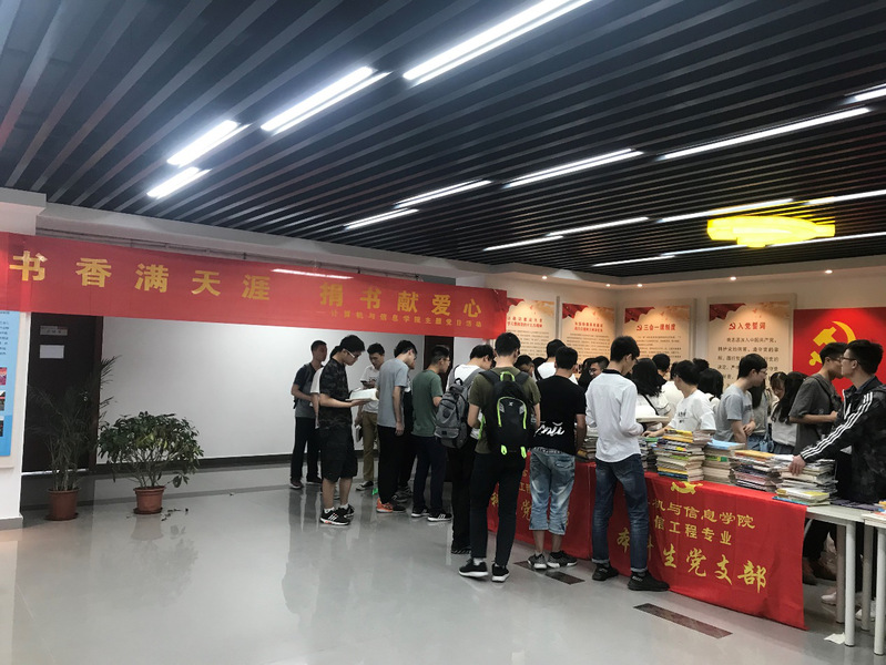 此次活动捐赠的书籍是由2015级本科毕业生离校前自愿捐赠而来,活动主要面向大一、大二、大三的学弟学妹们。为了方便同学们的挑选,党员同志们提前对相关专业课本、考研资料、课外辅导等书籍做了细致的收集整理和分类。本次活动吸引了大量的同学前来领取自己需要的图书资料,为方便同学们有序、高效的领取书籍,党员同志们也现场为前来领书的学弟学妹们讲解今后要用到的书籍并给出相应的推荐。前来领书的同学在党员同志们的热心帮助下,结合自己专业需求,都找到了自己心满意足的专业书籍与学习资料。