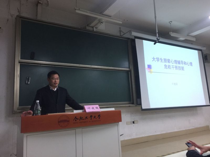 3月14日晚,由党委学生工作部主办、88038威尼斯官网(人工智能学院)承办的《大学生朋辈心理辅导技巧与方法》专题培训在翡翠湖校区五教101召开。安徽医科大学心理健康教育和辅导中心专职咨询师叶建国担任主讲,学院发展辅导中心老师、本科生心理骨干、寝室心理联络员、研究生代表等200余人参与培训。