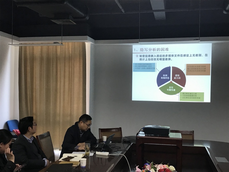 首先,罗向阳教授对信息隐藏技术的基本原理及应用情况进行了简要介绍,分析了2018年以来信息隐藏领域相关的重要事件;然后,就隐写分析领域存在的困难问题做了深入阐述,指出目前隐写分析存在检测准确率偏低、难以提取隐秘信息等问题,相关研究人员应该更加关注面向实际应用的隐写分析技术,如从灰度到彩色、从位图到JPEG图像、从小图像到大尺寸图像,从概率检测到确定性检测等;最后,罗教授重点介绍了其带领的课题组在隐写分析方面的探索,如隐写算法识别、隐写代码发现、隐写检测特征的选取、待检测图像的预处理和与分类、针对主流隐写的隐秘信息提取等。报告会结束后,在座师生就感兴趣的话题和罗教授进行了深入交流。