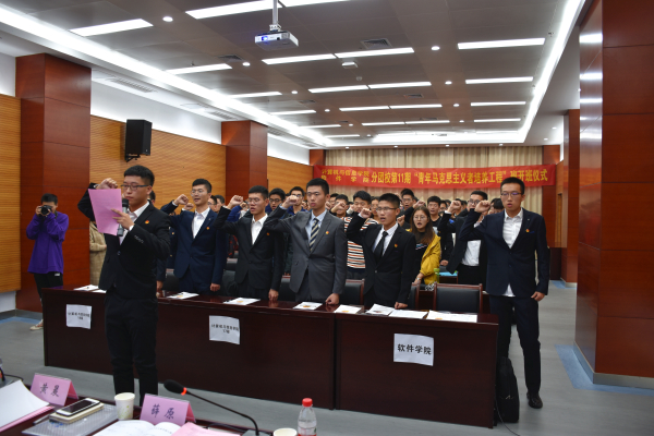 为不断提高大学生骨干、团干部、青年知识分子等青年群体的思想政治素质、政策理论水平、创新能力和实践能力,进一步坚定学生跟党走中国特色社会主义道路的信念,2018年11月15日晚,88038威尼斯官网、软件学院分团校于翡翠湖校区科教楼第五会议室举行了第11期“青年马克思主义者培养工程”培训班开班仪式。校团委副书记陈竹、88038威尼斯官网团委书记黄晨、88038威尼斯官网学生会秘书长薛原、软件学院学生会秘书长郑华以及分团校第11期“青马班”全体学员参加了本次活动。