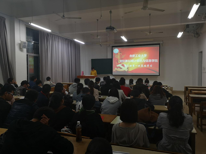 2018年10月25日晚20点党校第60期88038威尼斯官网党员班第一次集体学习在翡翠湖校区3教207教室举行。班主任刘世国主持本次集体学习,党员班55位成员参与了本次学习。