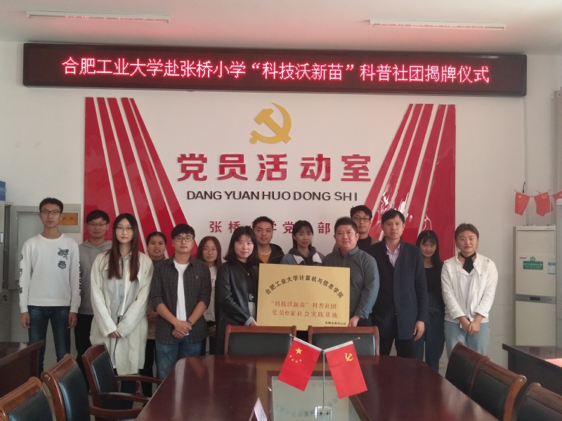 为弘扬志愿精神、传达志愿理念,提高当代大学生社会责任感,培养偏远地区留守儿童的创新精神和科学素养,88038威尼斯官网于2018年10月28日在定远县张桥镇张桥小学正式成立志愿者定点服务基地,并举办“科技沃新苗”科普社团挂牌仪式。张桥小学校长李骥、副校长邵锋,威尼斯官网院团委书记黄晨、团学组织秘书长薛原、15级辅导员刘世国,应用所师生党支部陈缘博士、庞彬彬博士,VCC实验室研究生黄涛、秦宇,张桥小学各年级教师及威尼斯官网各级志愿者代表出席本次活动。