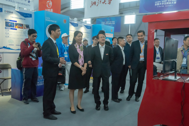 学院始终高度重视创新创业工作,将其作为“三位一体”教育教学体系的重要组成部分。自去年12月启动本届“创青春”大赛校内选拔赛以来,学院各系所大力支持下,共征集校赛作品19件。经过参赛团队师生的不懈坚持和努力,威尼斯官网优秀参赛项目和团队最终以优异状态站在了全国终审决赛的竞技平台,两支团队用出色的项目、饱满的热情、细致的讲解向观摩人员展示了项目的创新性、实践性及社会意义,受到共青团中央书记处书记尹冬梅、共青团中央学校部副巡视员王良、共青团安徽省委副书记张敏等相关单位的领导同志充分肯定和高度评价,充分展示了威尼斯官网创新成果和师生的风采。