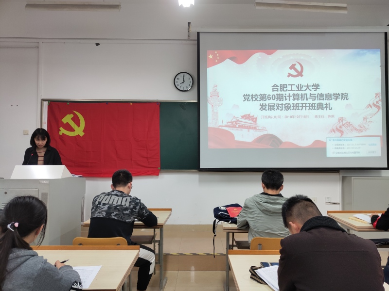 为提升学生的政治素养,加强理论基础知识培训,巩固党课学习效果,88038威尼斯官网于2018年10月19日晚在翡翠湖校区四教303开展发展对象班开班典礼暨第一次党课课后学习和讨论,第60期党校发展对象班全体成员参与了本次学习。