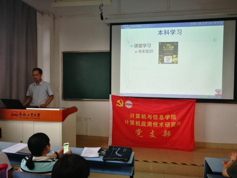支部党员,曹明伟老师结合自己的经历给同学们交流如何充实地读过本科四年生活;