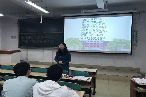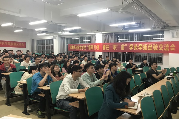 5月15日晚,计算机科学与技术本科生党支部、信息安全本科生党支部在5教104举办主题为 “计算机信安专业就业考研朋辈辅导”的交流活动,计算机和信安专业2014级优秀毕业生代表、计算机和信安专业2015级本科生参加了此次活动。活动上,优秀考研毕业生高垚、周楠向我们展示了自己漫长而又坚定的考研之路,极大的坚定了大三考研同学的学习热情。优秀就业毕业生岳鹏飞、冯雨、孙苏玮、陈宇杰则对同学们关心的校招流程、暑期实习生、面试简历等问题做出了相应的解答。活动过程中,各位“老师”的讲课,既集中在大三同学的主要问题上,又风趣幽默,给人留下了深刻的印象。经过了一个多小时的交流讲解,相信同学们在就业求职、考研学习的道路上会更加坚定和清晰,而这一定会给将来同学们的优秀发展夯下坚实的基础。