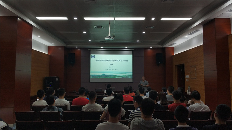 2018年5月29日下午,应88038威尼斯官网邀请,武汉大学国家网络安全学院何德彪教授和苏州链原信息科技有限公司郭宇 CEO做了区块链专题报告。网络与信息安全研究所所长胡东辉主持了报告会。来自学院多个系所的师生、部分外院师生参加了此次报告会。
