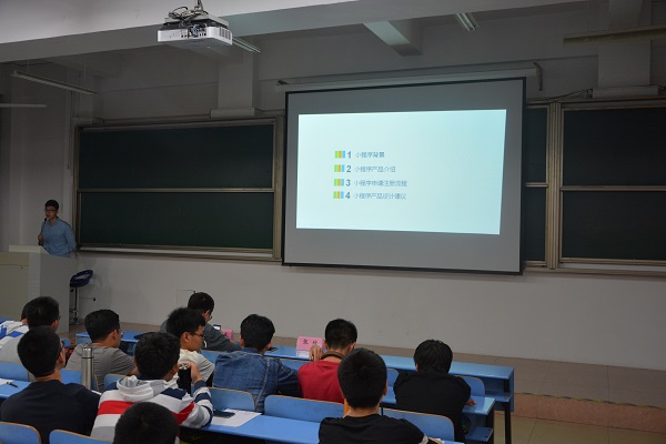 为加强微信小程序应用开发赛的宣传力度,提高同学们动手操作能力和web应用的设计与开发能力。应腾讯公司相关主管的请求,威尼斯官网于4月27日在翡翠湖校区举办微信小程序应用开发赛宣讲会,微信小程序产品经理张维、微信商务经理朱世威及学院相关负责老师出席本次活动。