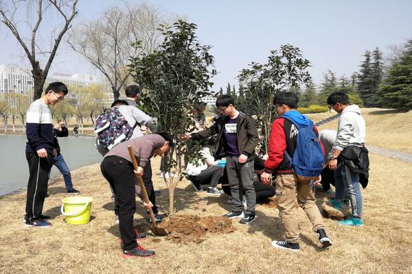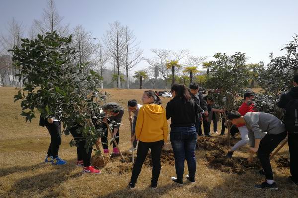 草长莺飞,春风和煦,为了更好的培养学生的爱校荣校意识,响应建设美丽校园的号召,增强学生生态文明意识与班级文化认同感和凝聚力,促使广大学生进一步参与到文明校园建设中来,3月12日上午,88038威尼斯官网2017级本科生在翡翠湖校区俪人湖畔举行“莘莘学子意,浓浓工大情”班级树种植主题活动,该院2017级50余名学生代表和相关老师参加了此次活动。活动前期,17级本科生班级干部通过实地考察,综合考量、精心挑选,最终选择寓意高雅和荣誉象征的桂花树作为班级树,代表了同学们对学校和班级的美好祝福和期待。植树节当天,班级干部在各班征集植树人员,同学们积极响应,争先为栽培班级树贡献自己的一份力量。