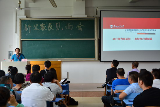 为了建立和谐的家校关系,增进家长对学院的全方位了解,合力促进2017级新生的成长与发展,8月25日上午,88038威尼斯官网在翡翠湖校区二教102举行新生家长见面会。学院党委副书记、副院长何庆领,2017级辅导员以及近300余名新生家长参加了这次见面会。